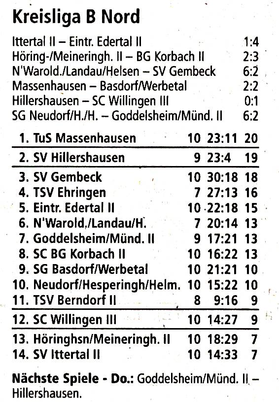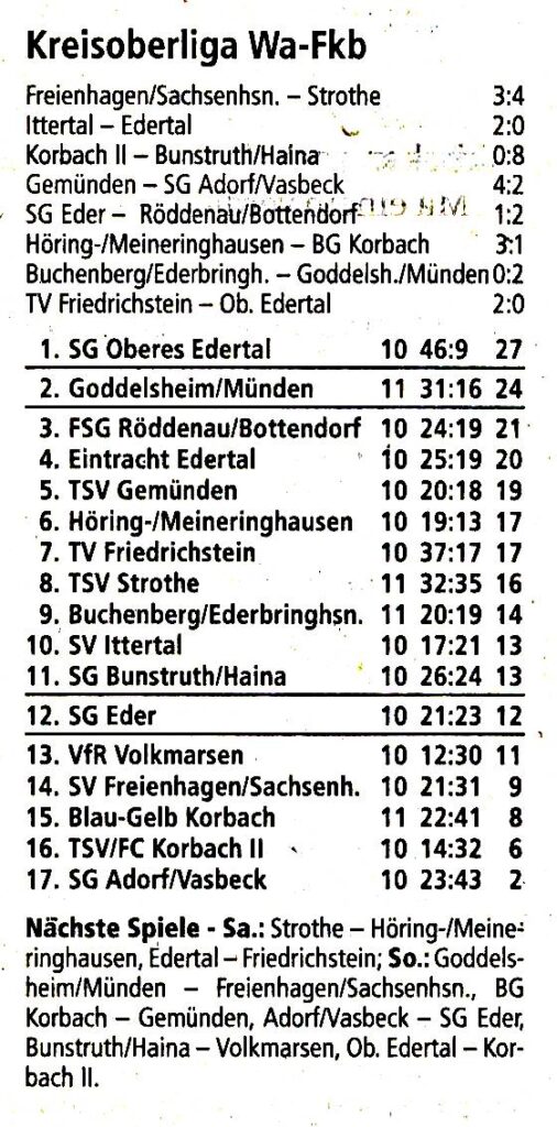 Höringhausen/Meineringhausen II – Blau-Gelb Korbach II 2:3 (2:2).