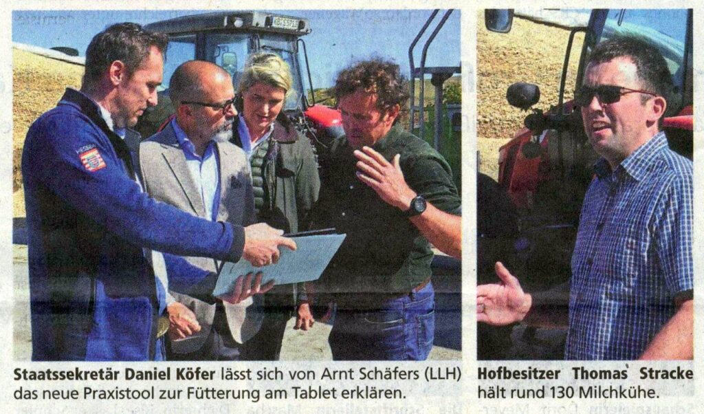 Lichtenfels-Goddelsheim – Wo früher das Bauchgefühl entschied, übernehmen heute Daten und digitale Tabellen: Vergangene Woche wurde auf dem Hof Stracke in Goddelsheim ein digitales Werkzeug für die Fütterung von Rindern präsentiert. Gastgeber Thomas Stracke, der mit seiner Familie rund 130 Milchkühe hält, öffnete Stall und Silos für die Gäste. Staatssekretär Daniel Köfer war persönlich nach Nordhessen gekommen – und betonte: „Das sogenannte Praxistool Fütterungscontrolling in der Rinderhaltung ist angewandte Digitalisierung aus der Praxis für die Praxis.“ Gemeinsam mit dem Landesbetrieb Landwirtschaft Hessen (LLH) wurde gezeigt, wie Milchviehbetriebe ihre Fütterung künftig effizienter und nachhaltiger gestalten können.