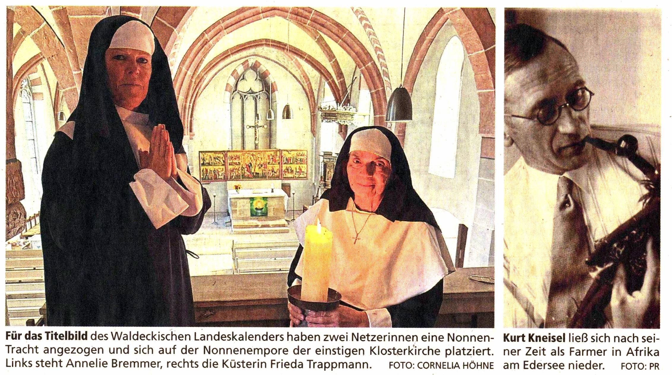 Fürs Titelbild des Landeskalenders hat WLZ-Redakteurin Conny Höhne eine Klosterszene auf der einstigen Nonnenempore der Netzer Klosterkirche gewissermaßen nachgestellt. Annelie Bremmer und die Küsterin Frieda Trappmahn sind dazu ins Nonnen-Habit gestiegen.