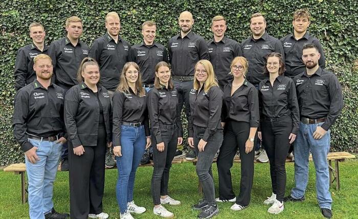 Die Meineringhäuser Kirmesburschen und -Mädels im einheitlichen Outfit. Noch bunter sind die Kostüme bei ihrer Show am Montagabend mit lustigen Erinnerungen an ihre Kindheit. © Foto: Privat