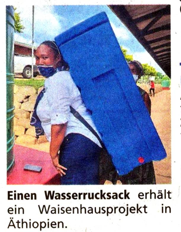 Jedes Jahr spendet Veltum mindestens einen „Paul-Wasserrucksack“. Das mobile Filtersystem reinigt verschmutztes Wasser – ohne Strom. 2025 geht ein Paul nach Äthiopien, ins Waisenhaus Hope Lalibela. Dort leben 34 Kinder und Jugendliche. Der Rucksack wird Teil einer Trinkwasserfilteranlage – für die Kinder und 300 Menschen aus der Nachbarschaft.