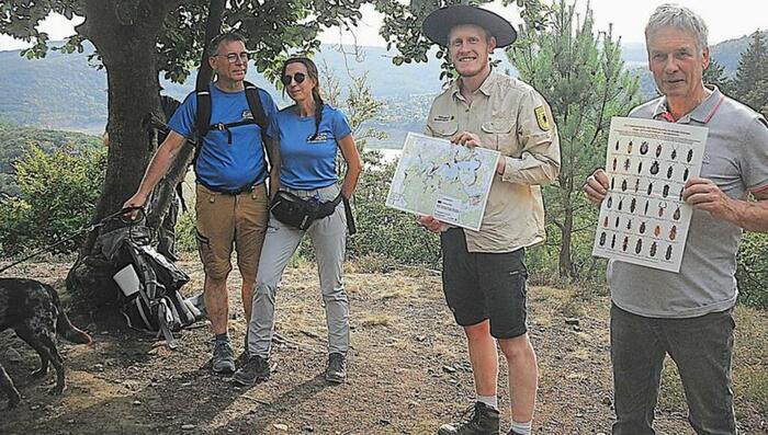 Über den Jägerstieg geht es bergan zur Ratzeburg. Auf dem Weg krabbelt ein Moderkäfer, der überwiegend unter Totholz lebt. Am nördlicher gelegenen Katzenstein gedeihen Orchideenarten wie das Rote und Weiße Waldvöglein, die im Frühjahr blühen und viel Licht brauchen. Auch das streng geschützte Spatelblättrige Greiskraut, das ansonsten in Deutschland nur in den Alpen, am Ostrand des Schwarzwaldes und der Schwäbischen Alb vorkommt, wächst hier. „Der Katzenstein ist eines der artenreichsten Naturschutzgebiete dieser Region“, erklärt Tobias Fleck, bevor die Tour kurz darauf am Ziel in Waldeck endet. JÖRG SCHÜTTLER