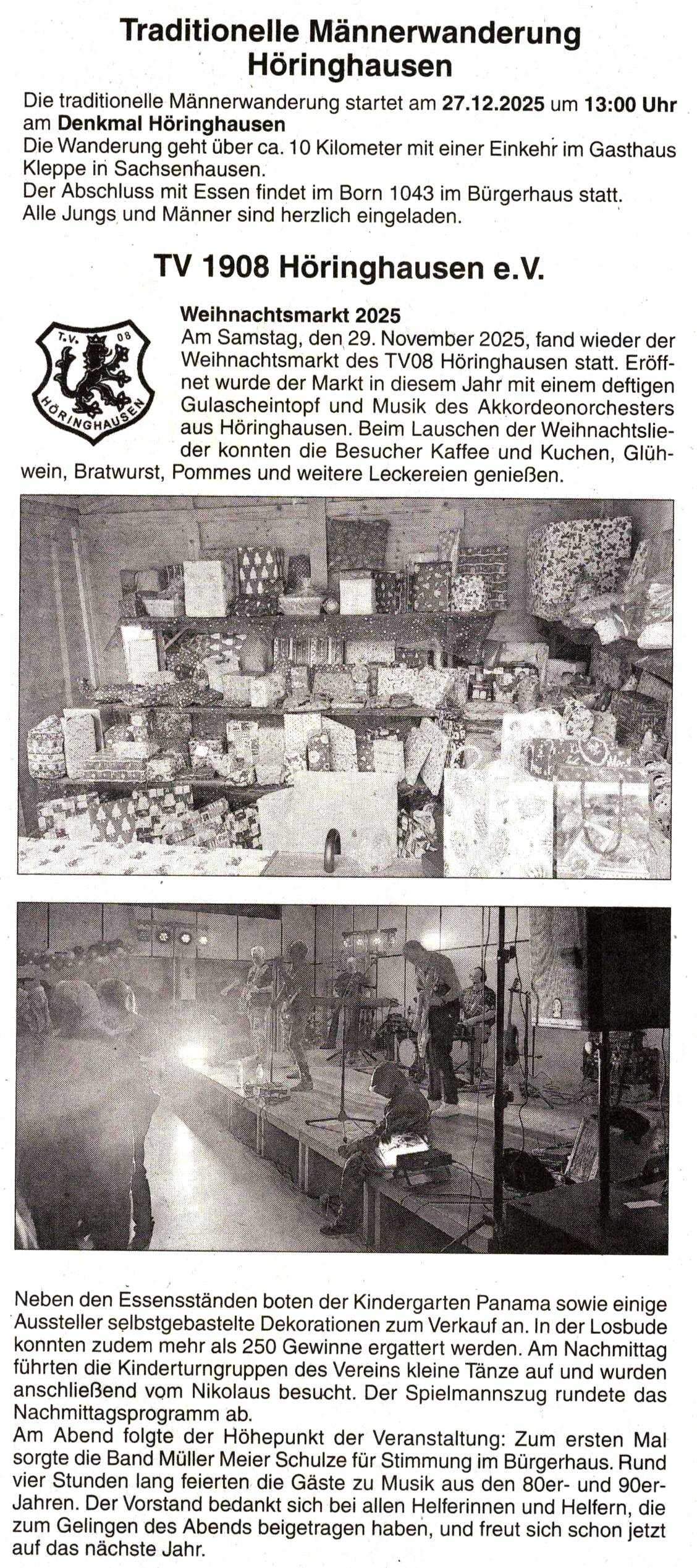 TV 1908 Höringhausen: Rückblick Weihnachtsmarkt