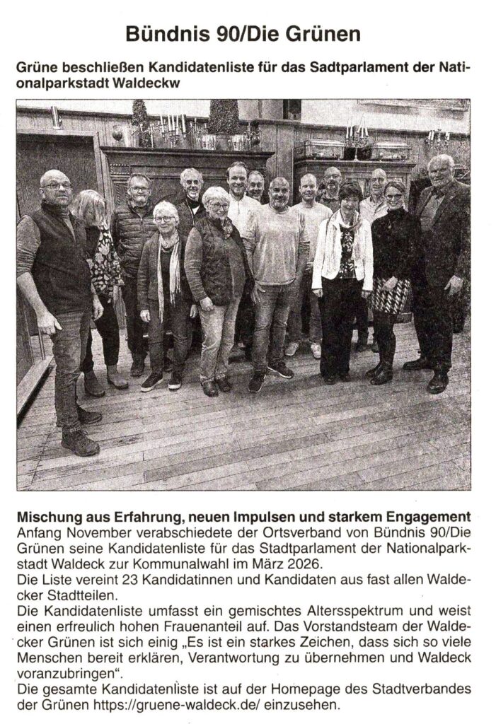 Bündnis 90/Grüne beschließen Kandidatenliste