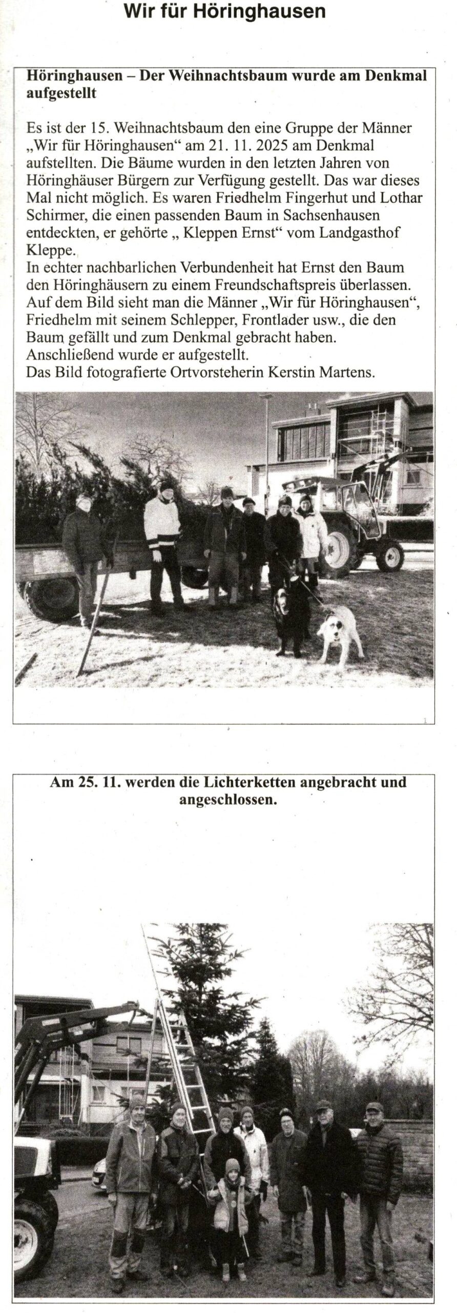 Männer „Wir für Höringhausen“ stellten Weihnachtsbaum auf